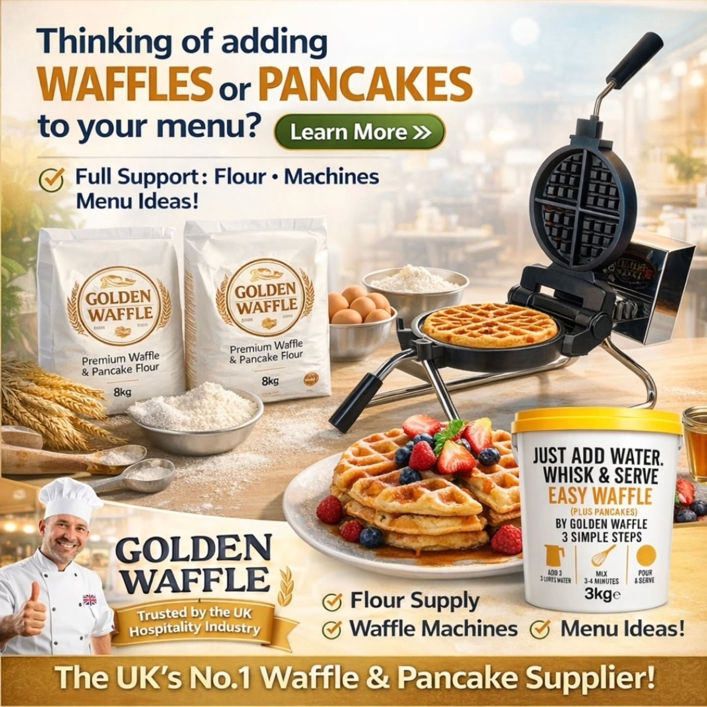 Golden Waffle is redefining waffle supply for hospitality with a smarter, UK-made system built for speed, consistency, and profit. From just-add-water mixes to commercial waffle machines, we help cafés, hotels, dessert bars, and QSRs serve premium waffles with less prep, less mess, and more control. We are not here to follow the market — we are here to raise the standard and help operators grow with confidence.